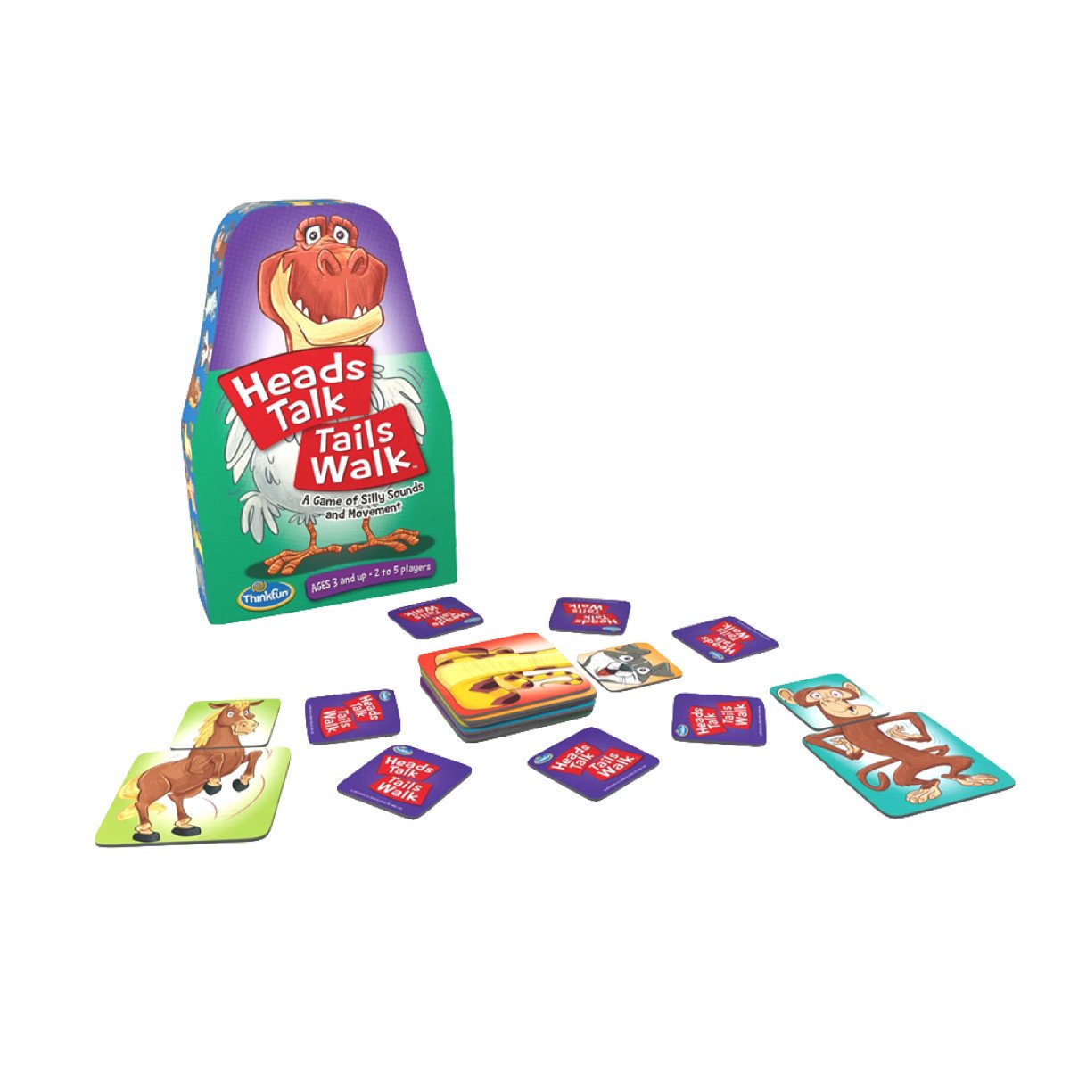 Heads Talk Tails Walk เป็นบอร์ดเกมจับคู่ภาพสัตว์ที่สร้างเสียงหัวเราะสำหรับเด็กอายุ 3 ปีขึ้นไป ผู้เล่นจะพยายามจับคู่ส่วนหัวสัตว์กับส่วนลำตัวสัตว์ให้ตรงกัน
