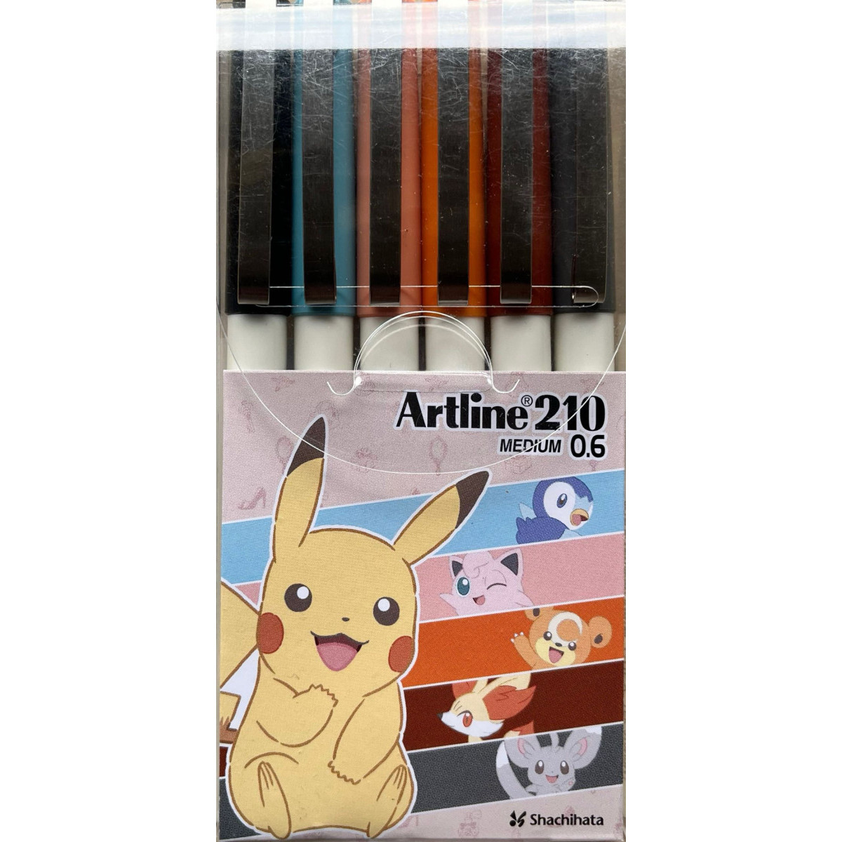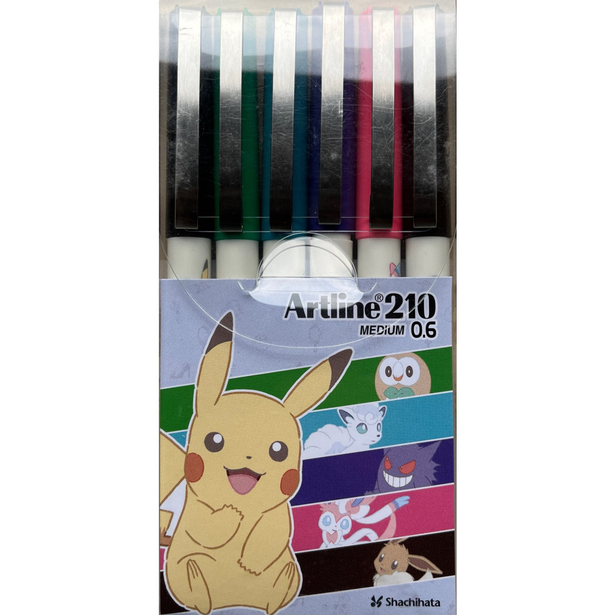 ปากกาไฟเบอร์หัว 0.6 x Pokemon เซทปากกา 6 แท่ง สีเข้ม