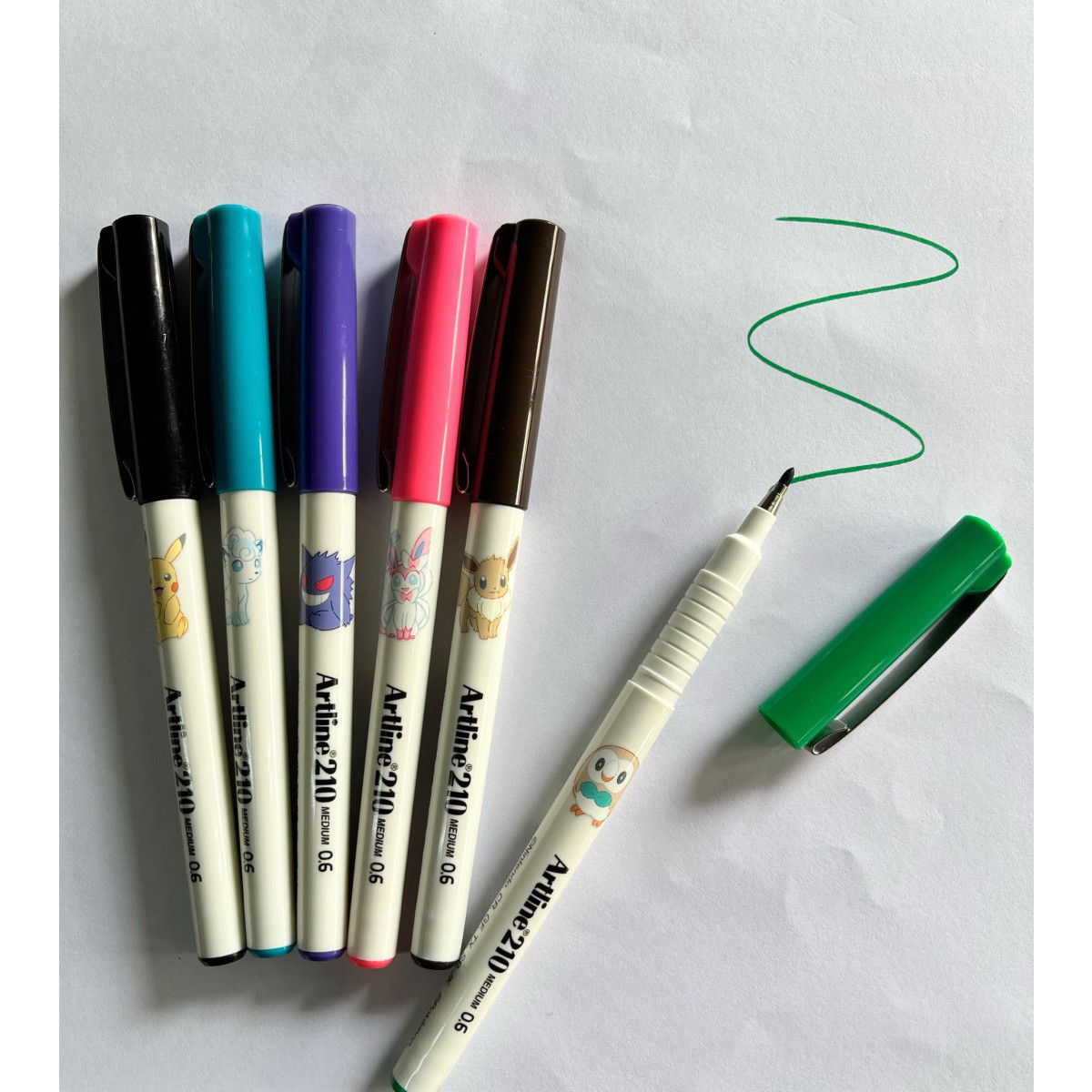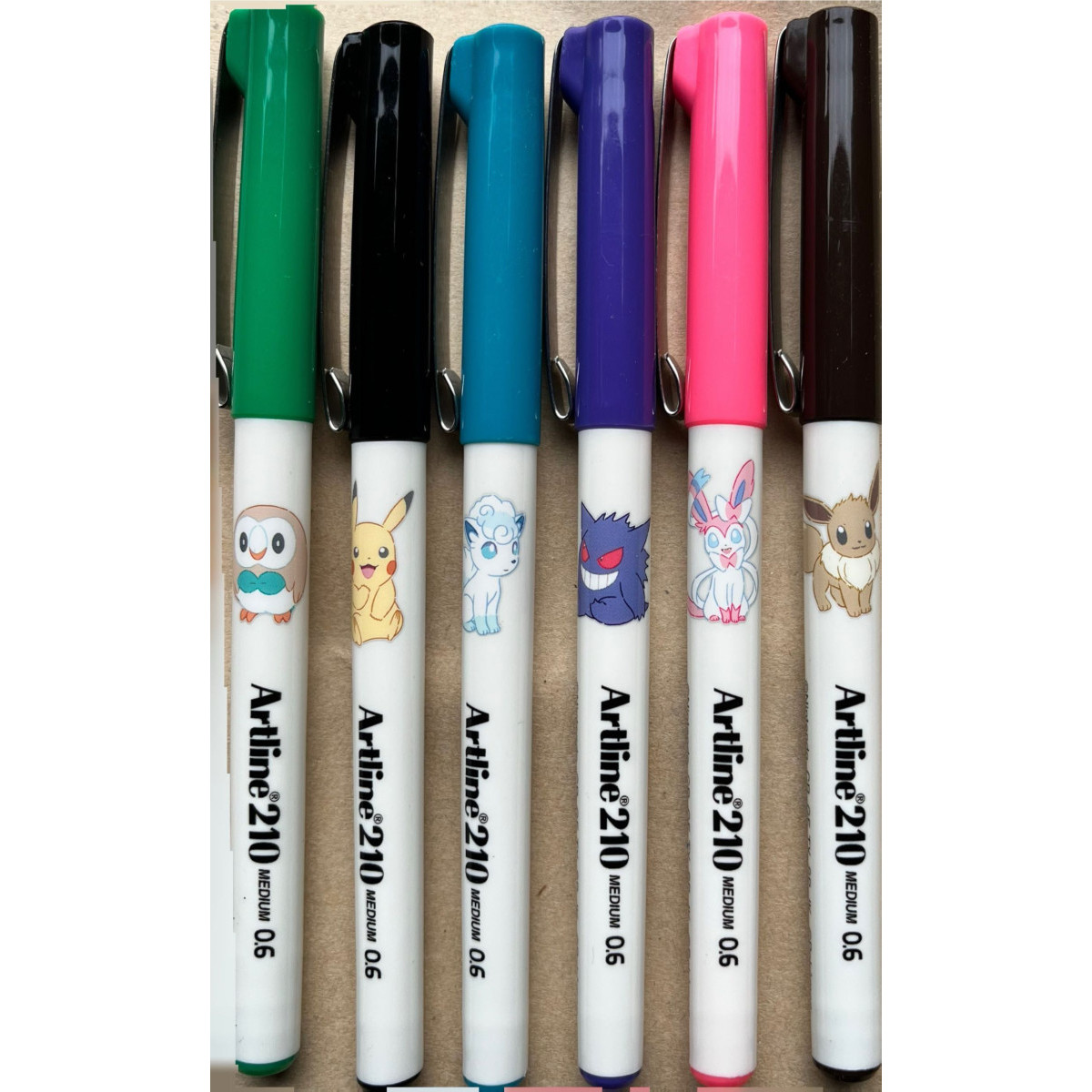 ปากกาไฟเบอร์หัว 0.6 x Pokemon เซทปากกา 6 แท่ง สีเข้ม