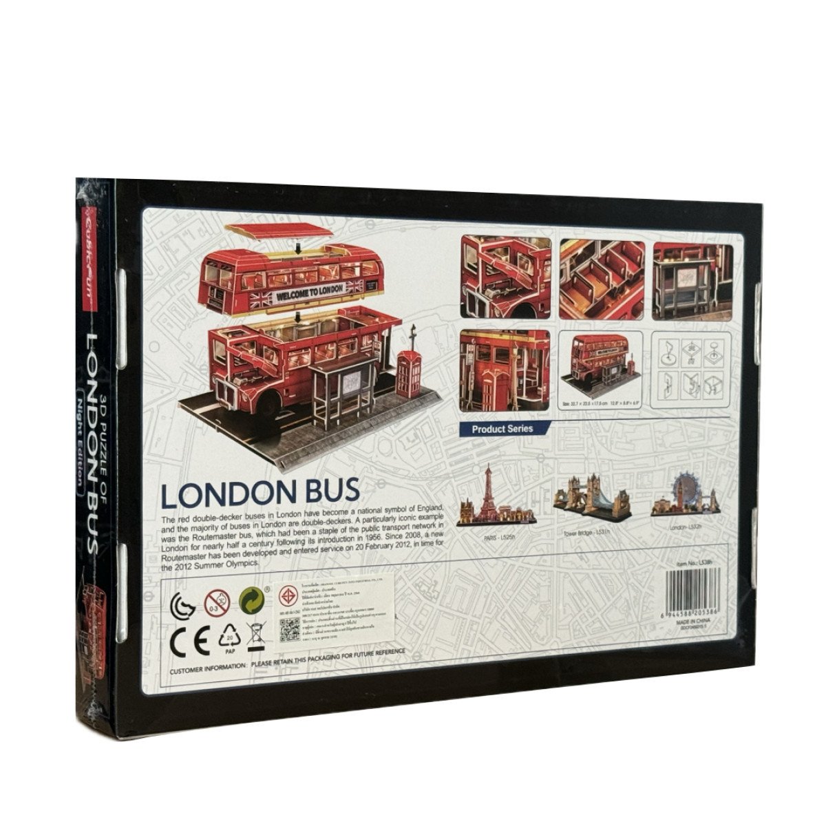 โมเดลจิ๊กซอว์ 3 มิติ รุ่นมีไฟ เอฟเฟกต์แสงในตัว เพิ่มความน่าสนใจให้กับตัวโมเดล "รถบัสลอนดอน" รถบัส 2 ชั้นสุดคลาสสิกของอังกฤษ รถบัสโดยสารประจำทางที่วิ่งไปบทท้องถนนทั่วกรุงลอนดอนตลอด 24 ชม.โดยเฉพาะอย่างยิ่ง รสบัสโดยสารรอบดึก หรือ London's night bus