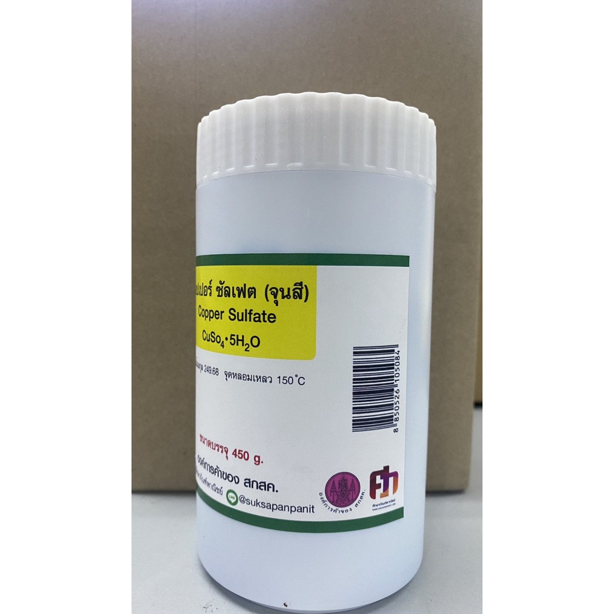 ขนาดบรรจุ : 450 gสูตรเคมี : CuSO₄·5H₂Oมวลโมเลกุล : 249.68 g/mol จุดวาปไฟ : จุดหลอมเหลว : 150 °Cจุดเดือด :