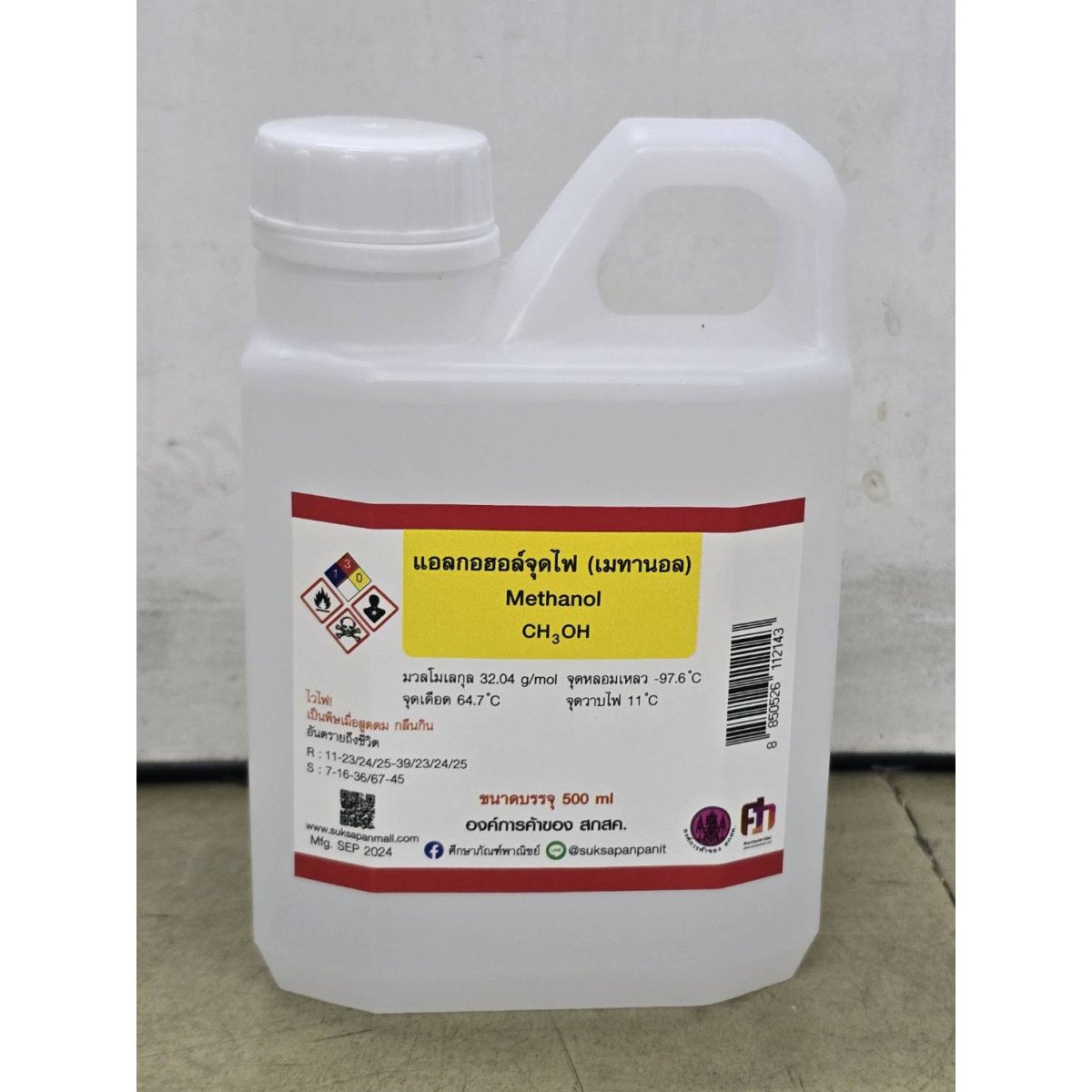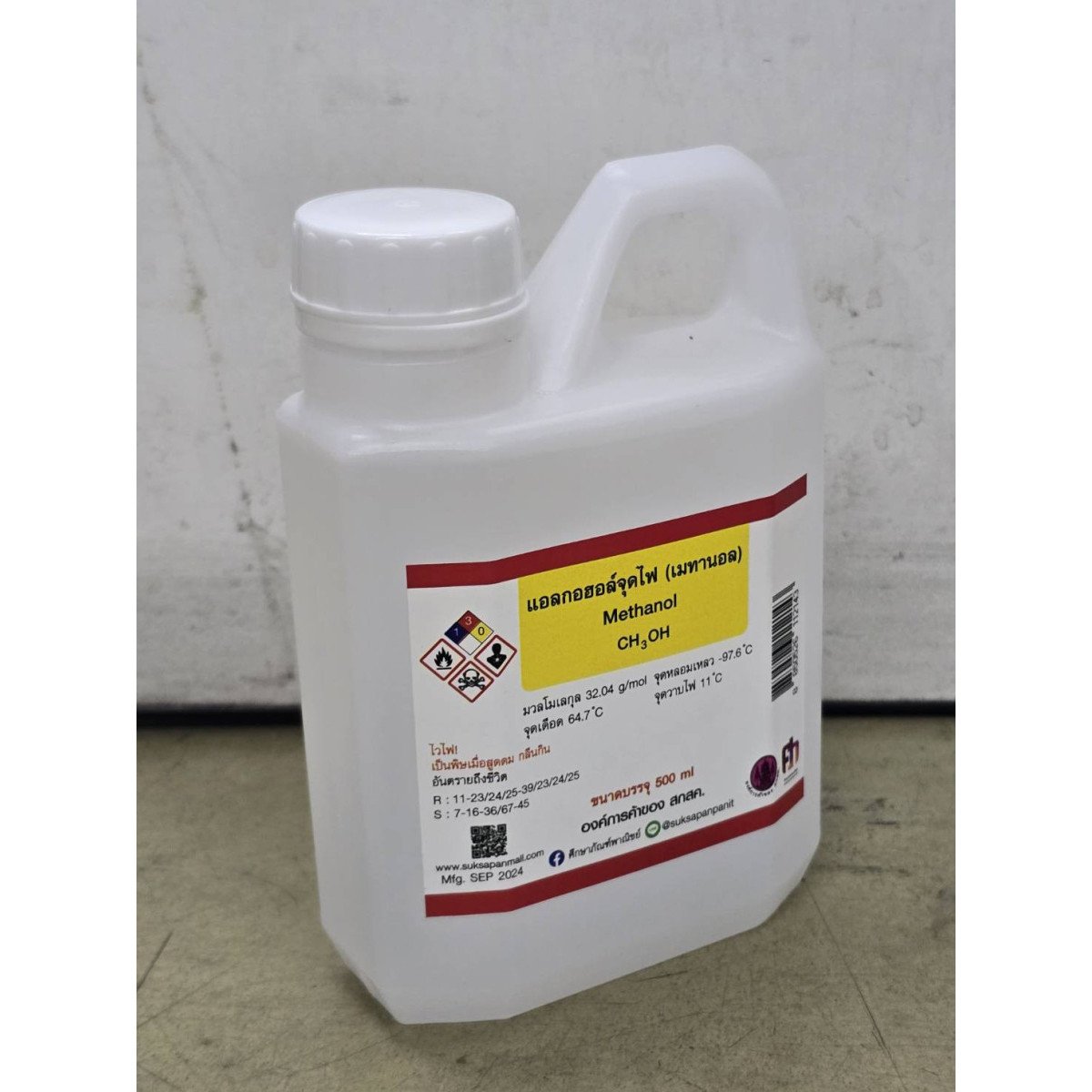 ขนาดบรรจุ : 500 mlสูตรเคมี : CH3OHมวลโมเลกุล : 32.04 g/mol จุดวาปไฟ : 11 °Cจุดหลอมเหลว : -97.6 °Cจุดเดือด : 64.7 °C คำเตือน : ไวไฟ เป็นพิษเมื่อสูดดม กลืนกิน