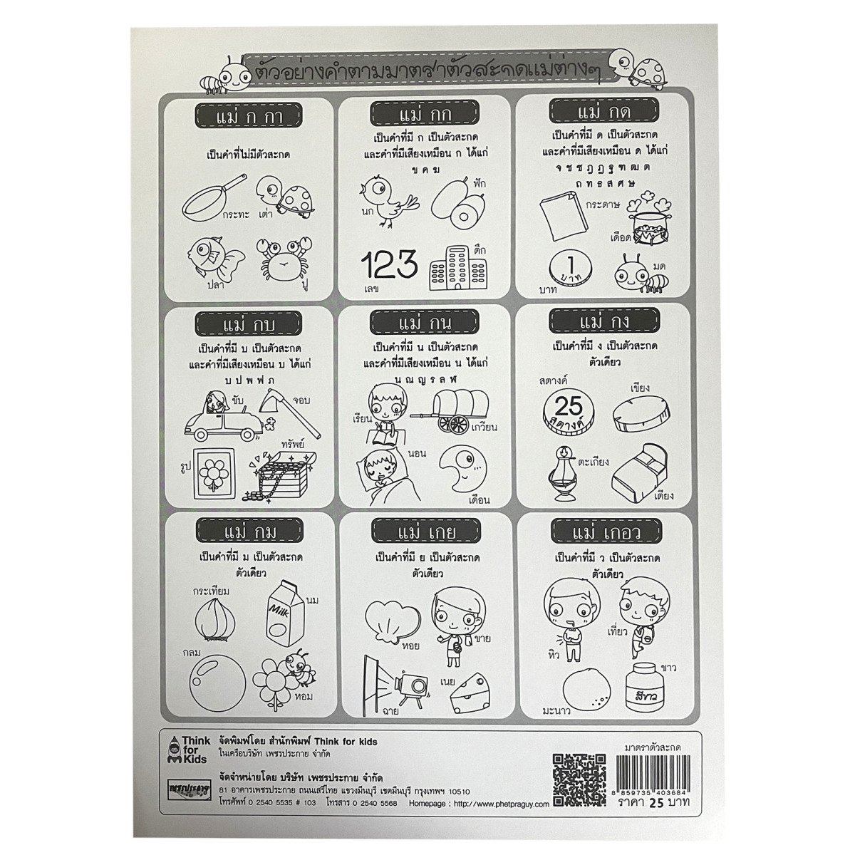 มินิโปสเตอร์มาตราตัวสะกด สำหรับคุณหนู ส่งเสริมทักษะทางด้านภาษาอังกฤษ ฝึกหัดอ่านตัวอักษรภาษาไทยตัวสะกด ได้อย่างถูกต้อง แม่นยำ และรวดเร็ว เนื้อกระดาษเคลือบกันน้ำ ทนทาน ไม่ฉีกขาดง่าย สีสันสดใส เหมาะสำหรับปูพื้นฐานด้านภาษาอังกฤษให้กับเด็กวัยก่อนเข้าเรียน