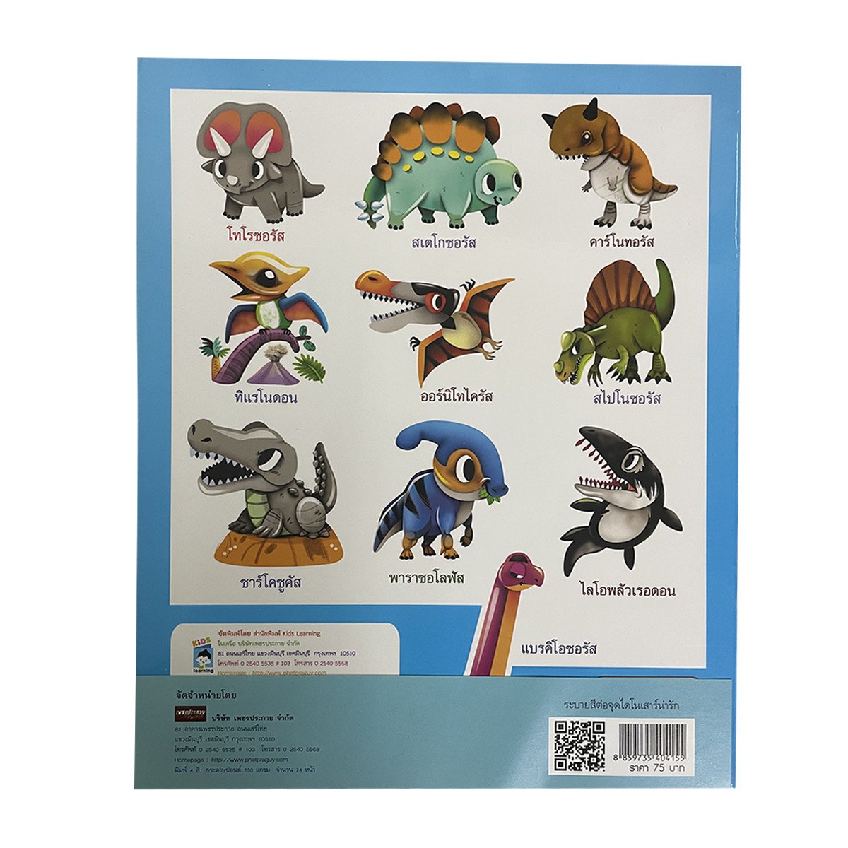 พบกับไดโนเสาร์มากมายหลากหลายชนิด พร้อมฝึกลากเส้นต่อจุดตามรูปร่าง ระบายสีภาพไดโนเสาร์สีสันสดใส พัฒนาสมองซีกขวา บริหารกล้ามเนื้อมือ สนุกสนานได้ความรู้ไปพร้อม ๆ กันเลยทีเดียว!