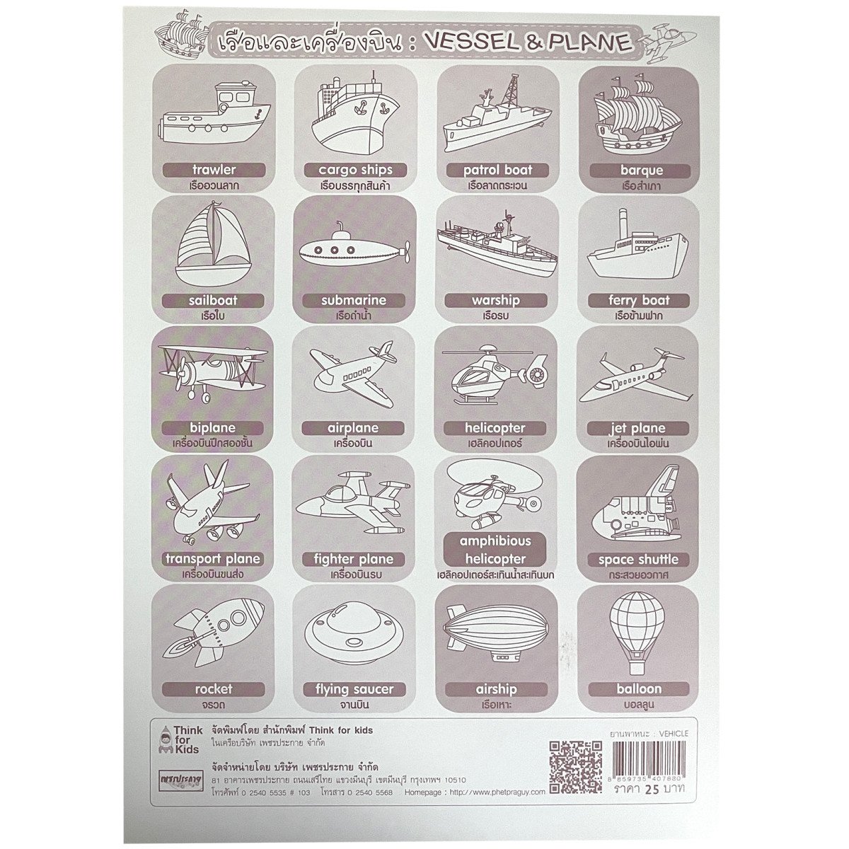 มินิโปสเตอร์ ส่งเสริมพัฒนาการสำหรับเด็กในด้านความรู้เกี่ยวกับการแยกแยะประเภทของยานพาหนะ ที่มีจำนวนหลากหลายและแตกต่างกันตามท้องถนน ฝึกทักษะการจดจำและเรียนรู้สิ่งที่อยู่รอบๆ ตัว