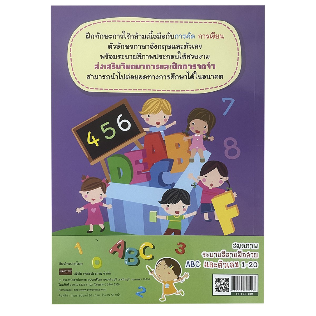 ฝึกทักษะการใช้กล้ามเนื้อมือกับการคัด การเขียน ตัวอักษรภาษาอังกฤษและตัวเลข พร้อมระบายสีภาพประกอบให้สวยงาม ส่งเสริมจินตนาการและฝึกการความจำ
