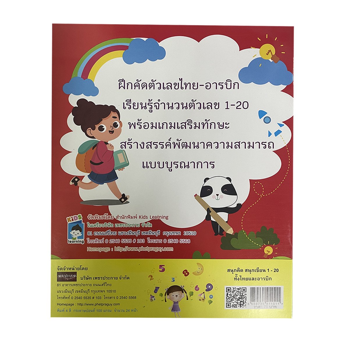 เล่มนี้ จะชวนเด็ก ๆ มาฝึกคัดตัวเลขไทย-อารบิก เรียนรู้จำนวนตัวเลข 1-20 พร้อมเกมเสริมทักษะ สร้างสรรค์พัฒนาความสามารถแบบบูรณาการ ช่วยให้เด็ก ๆ เตรียมความพร้อมในระดับสูงขึ้นไปได้เป็นอย่างดี