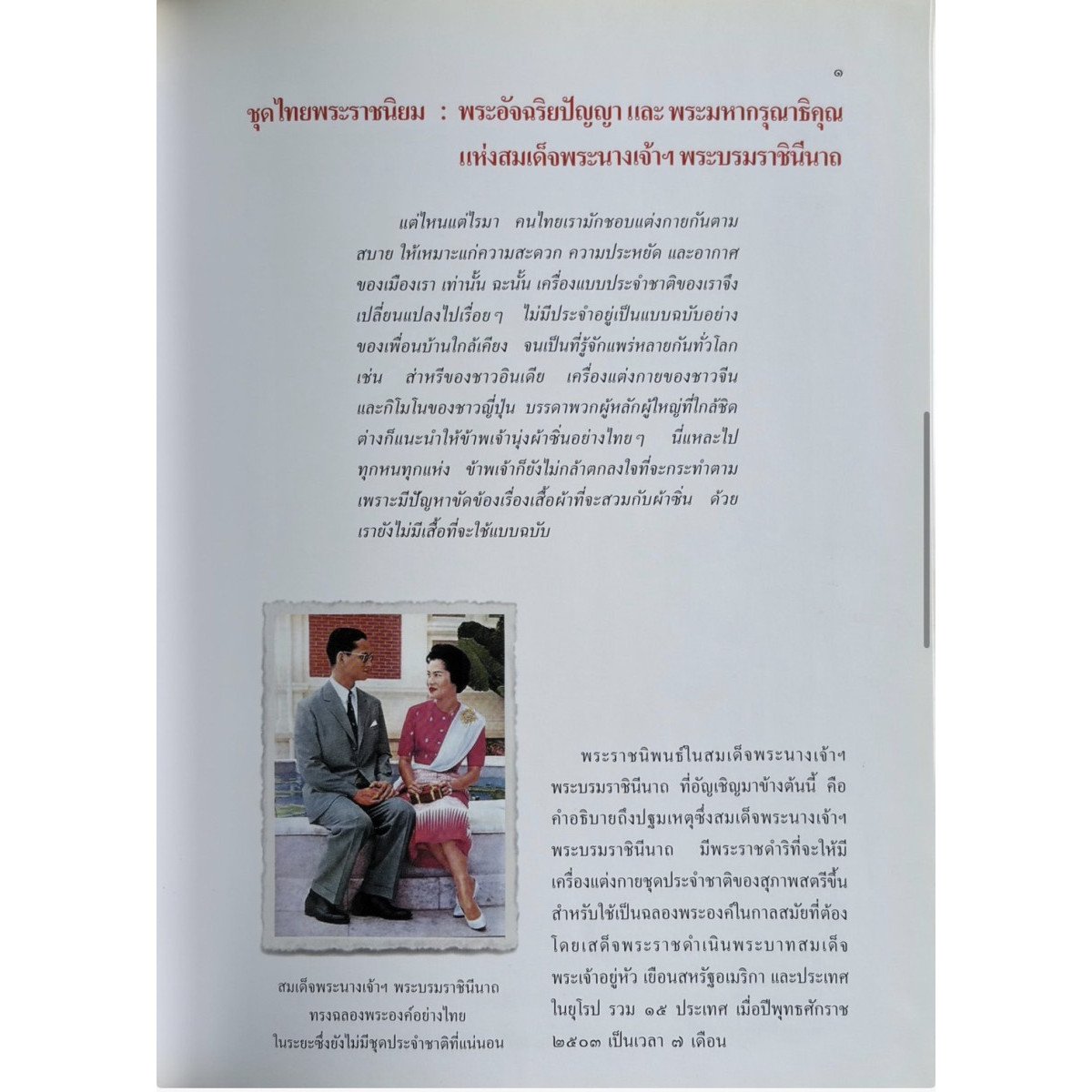 เป็นหนังสือที่รวบรวมข้อมูลเกี่ยวกับชุดไทยสตรี 8 แบบที่เกิดขึ้นจากพระราชดำริของสมเด็จพระนางเจ้าสิริกิติ์ พระบรมราชินีนาถ พระบรมราชชนนีพันปีหลวง เพื่อเป็นชุดประจำชาติสำหรับสตรีไทย