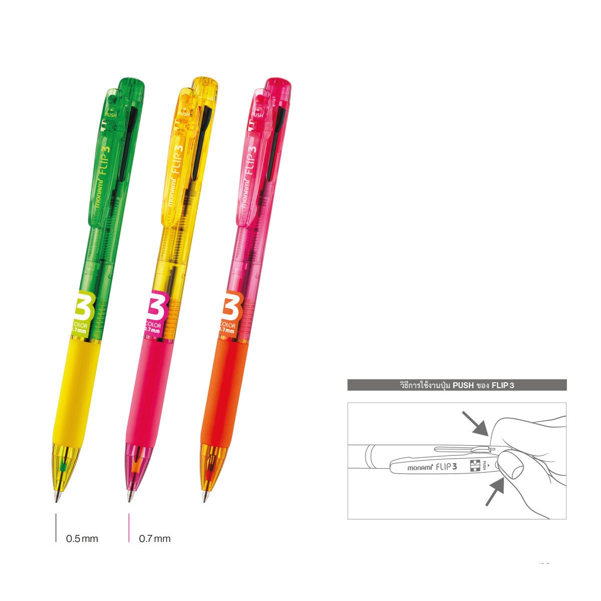 ปากกาลูกลื่น Monami รุ่น ฟลิป 3 สีสะท้อนแสง