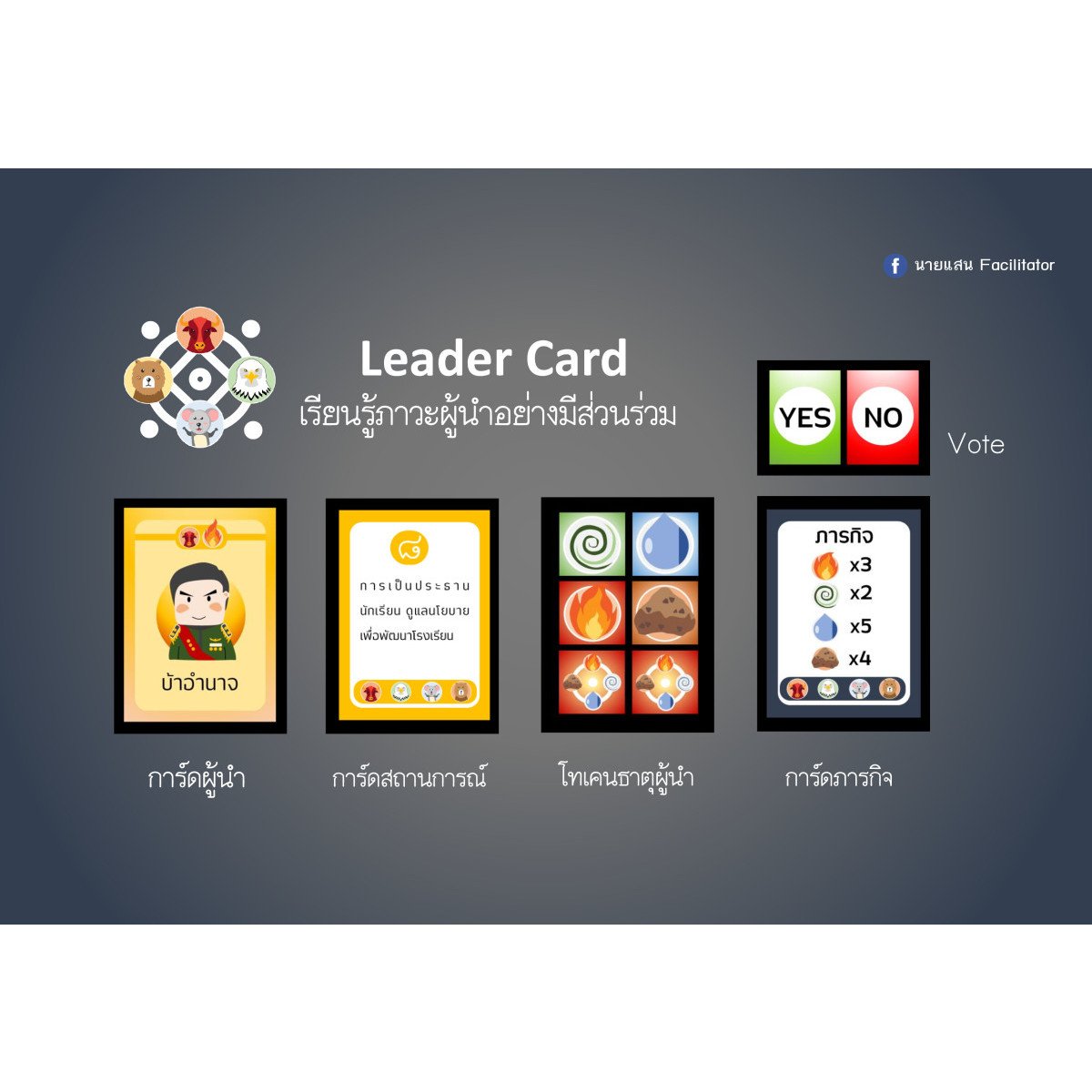 บอร์ดเกมเพื่อการสะท้อนถึงตัวตน เพื่อวิเคราะห์อุปนิสัยของตนเอง ในการรับมือกับสถานการณ์ต่าง ๆ ในชีวิตประจำวัน โดยยึดหลักแนวคิด ของผู้นำ 4 ทิศ ผู้เล่นจะต้องอธิบายถึงอุปนิสัยที่สอดคล้องกับสถานการณ์ต่าง ๆ ในชีวิตประจำวันที่เกมกำหนดให้ และสุดท้ายสะท้อนผลคุณค่าในตนเองหลังจากเล่นเสร็จ