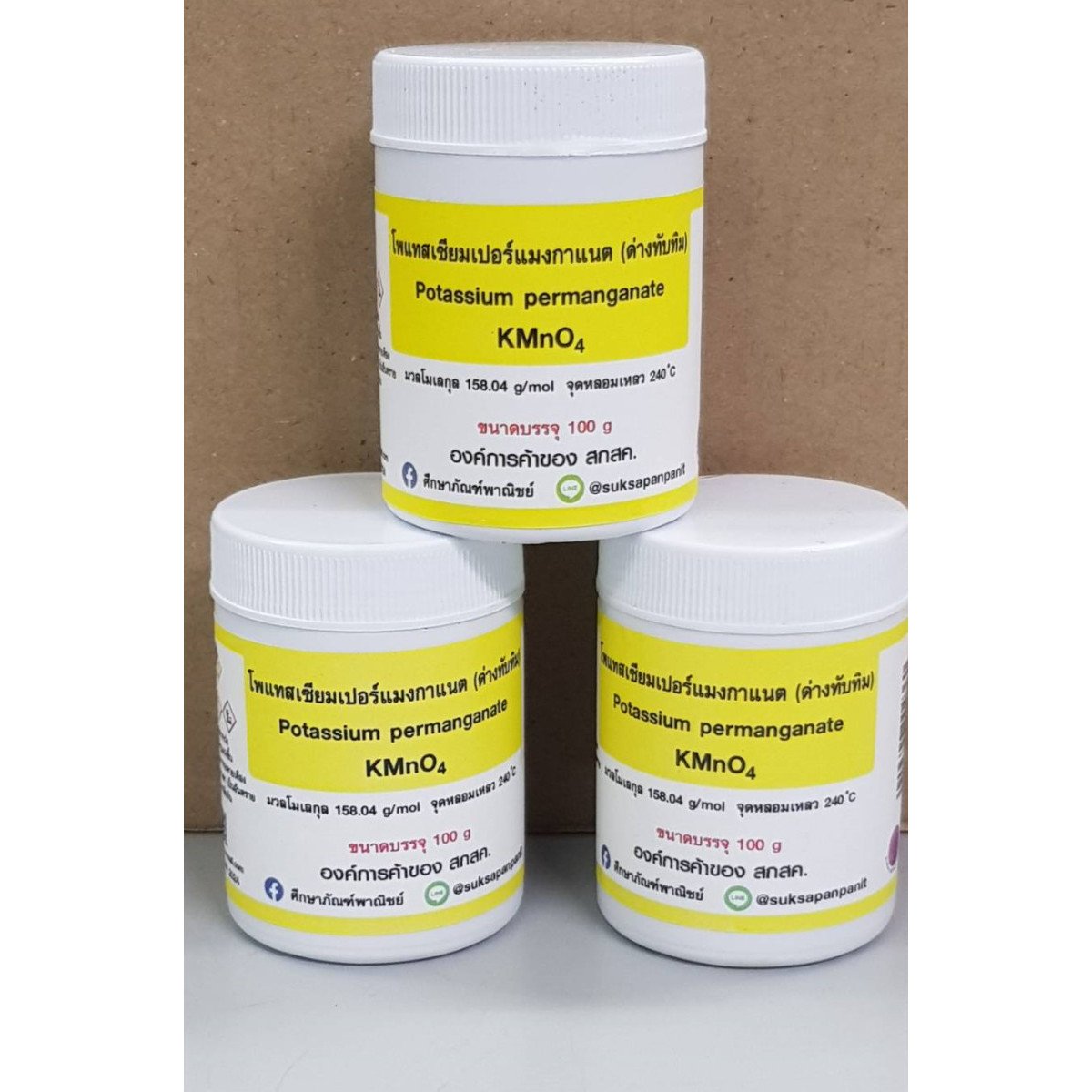 ขนาดบรรจุ : 100 CCสูตรเคมี : KMnO4มวลโมเลกุล : 158.04 g/mol จุดวาปไฟ : จุดหลอมเหลว : 240 °Cจุดเดือด :
