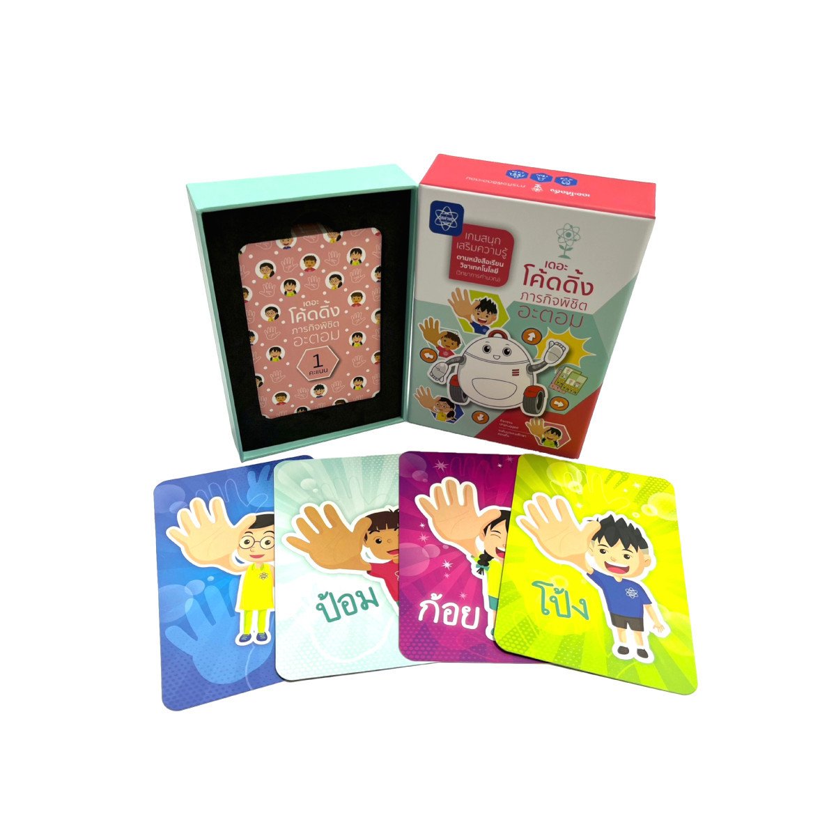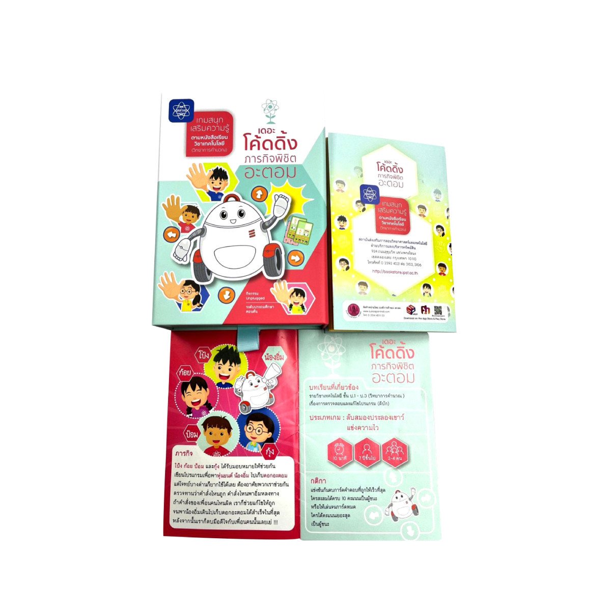 -ฝึกทักษะการคิดวิเคราะห์ แก้ปัญหา และเสริมความเข้าใจ ในการเขียนโปรแกรมโดยใช้บัตรคำสั่ง -มาร่วมภารกิจไปพร้อมกับ โป้ง ก้อย ป้อม และกุ้ง ตรวจสอบและแก้ไขโปรแกรม ช่วยพา น้องอิ่ม ไปเก็บ ดอกอะตอม ได้สำเร็จ !