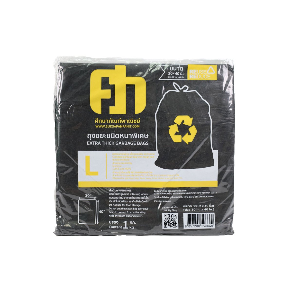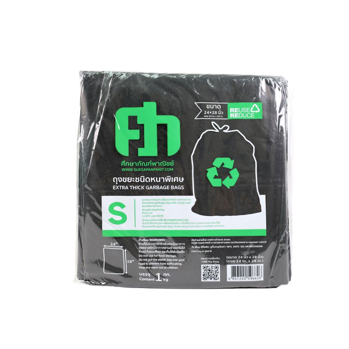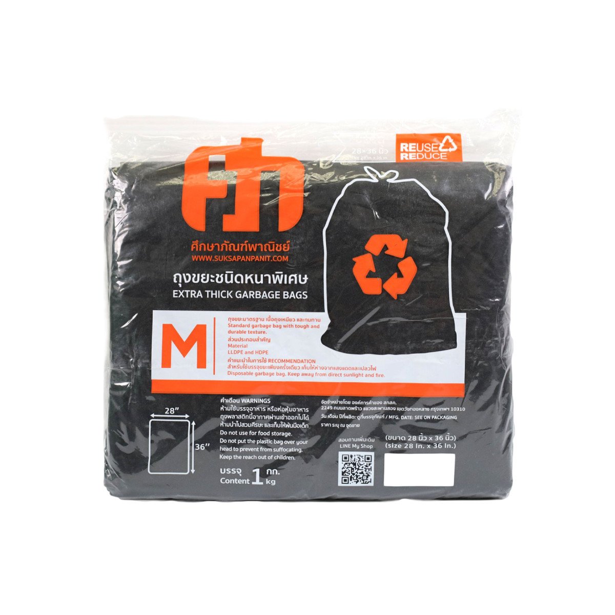 ถุงขยะดำ ศึกษาภัณฑ์พาณิชย์ มาตรฐานชนิดหนาพิเศษ เนื้อถุงเหนียว และทนทาน