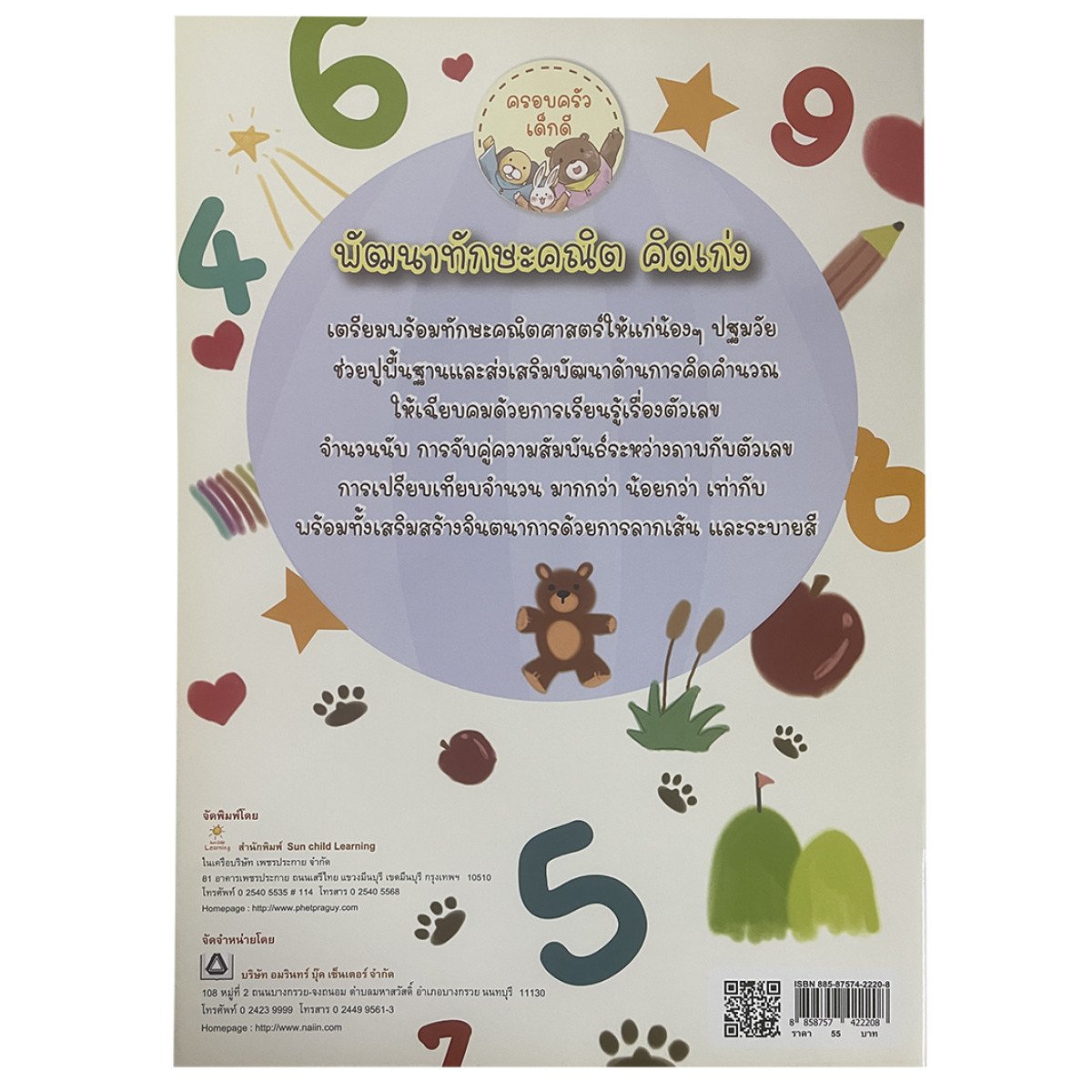 แบบกิจกรรมเพิ่มทักษะทางคณิตศาสตร์ ปูพื้นฐานสำหรับน้องๆ วัย 3 ขวบขึ้นไป เพื่อให้รู้จักเรียนรู้เรื่องตัวเลข จำนวนนับ การบวก การลบ การจับคู่ความสัมพันธ์ การเปรียบเทียบจำนวน ขนาด พร้อมเสริมสร้างจินตนาการด้วยกิจกรรมลากเส้นระบายสีแสนสนุก