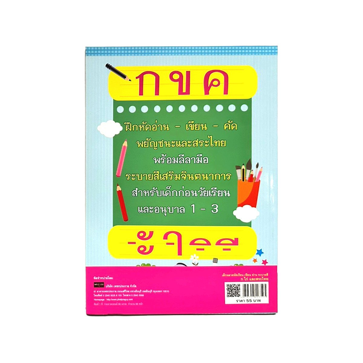 ฝึกหัดอ่าน เขียน คัด พยัญชนะและสระไทย ตามรอยประ พร้อมฝึกลากเส้นลีลามือ ระบายสี เสริมจินตนาการ สำหรับเด็กก่อนวัยเรียน และอนุบาล 1-3 สำหรับน้องๆ ปฐมวัย เพื่อปูพื้นฐานในการเรียนรู้ขั้นต่อไปอีกด้วย