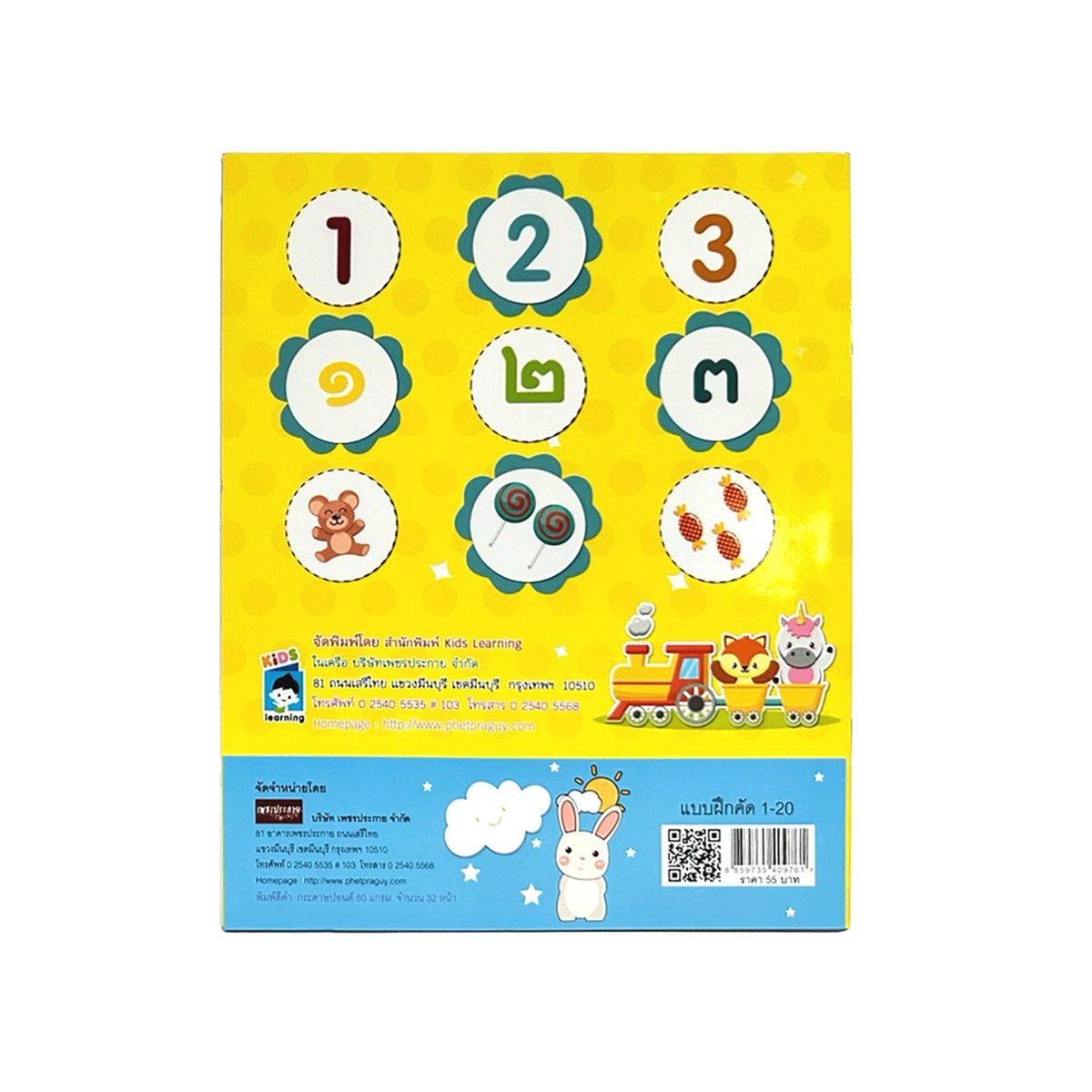 แบบฝึกคัด 1-20 ฝึกอ่าน เขียน เพื่อจดจำ ตัวเลขที่ถูกต้อง หนังสือเล่มนี้ ออกแบบสำหรับเด็กปฐมวัย เสริมการเรียนรู้ในด้าน CQ ความฉลาดทางปัญญา